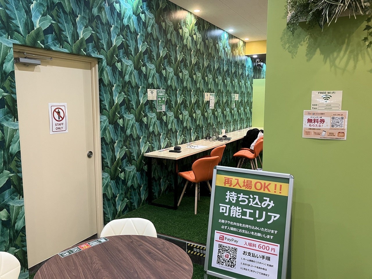また、店舗内で無料で使えるWi-Fiもセキュリティーの入った高速Wi-Fiを導入しておりますので通常のFreeWi-Fiとは異なり、通信速度も速く動画やオンライン会議などもストレスなくご利用頂けるのに加えて、電源も完備しておりますので充電切れなどの心配もありません。