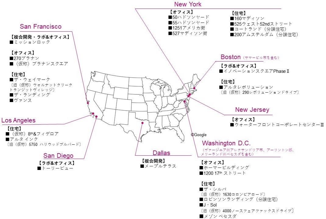 三井不動産の米国事業(オフィス・住宅等)(2022年10月現在)