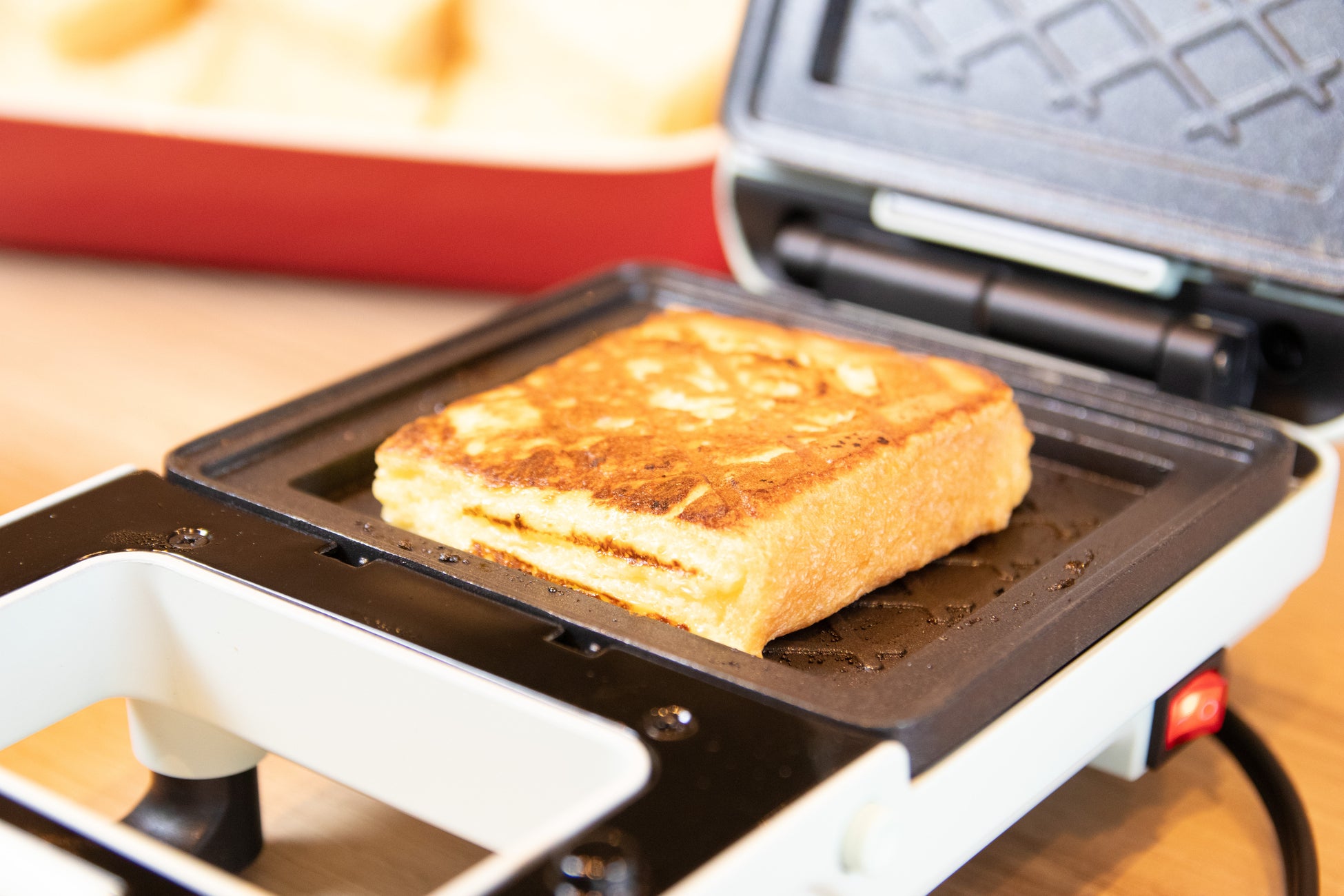 た~っぷりの卵液に一晩しっかりと浸したパンをホットサンドメーカーに挟めば、幸せなバニラの香りがふわっと漂い、あっ!という間に絶品フレンチトーストが出来上がります♪