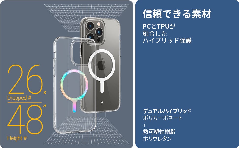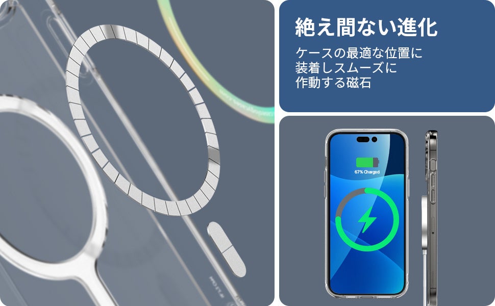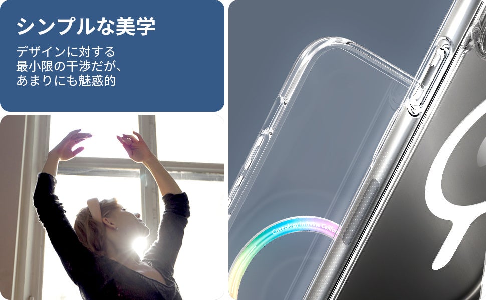 内臓されているMagSafe対応マグネットの外側・内側は、Caseology独自のスタイルでデザインされています
