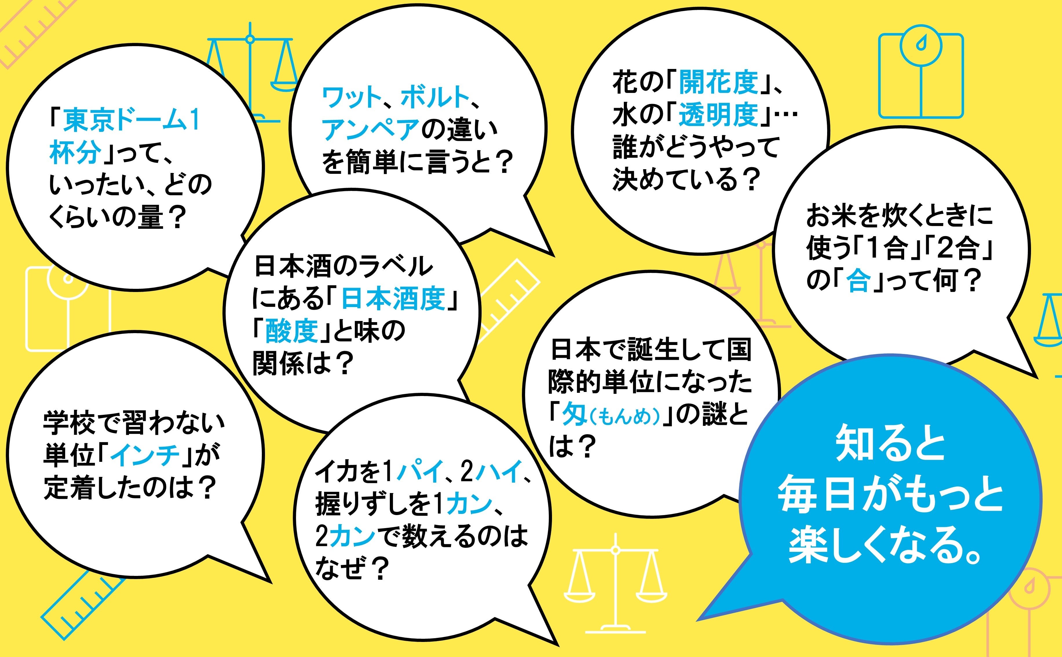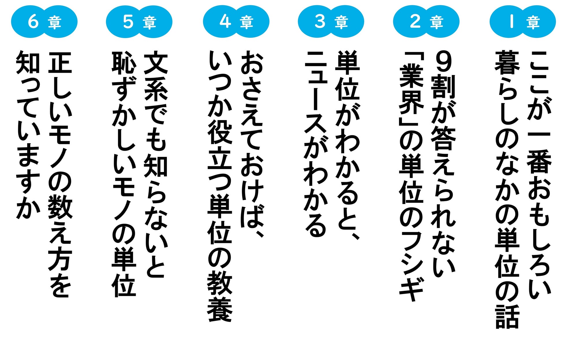 本書では、誰もが知っている基本単位から、聞いてはいるが意味のよくわからない単位、 文科系も最低限知っておきたい科学の単位、そして業界特有の単位まで、身近な単位をめぐるエピソードや裏話を紹介しました。人間の知恵と歴史が詰まった「単位の世界」をご堪能ください!