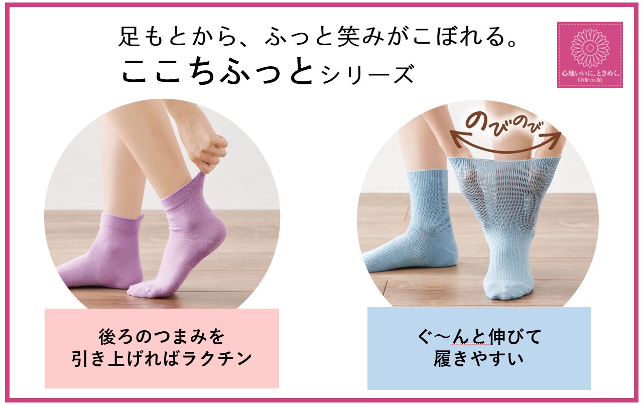 足もとから、ふっと笑みがこぼれる。ここちふっとシリーズ『ここち履きつまみソックス・色違い2足組』『ここち伸びソックス・色違い2足組』がセシールから新発売!
