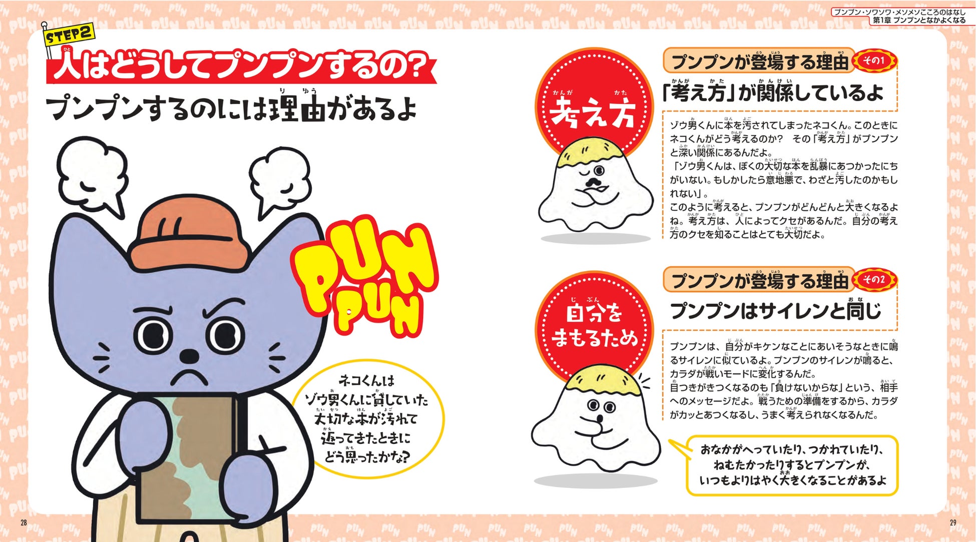 本書には、「プンプン ソワソワ メソメソともお友達になれるよ。そうしたら、もっと自由に自分のやりたいこと、やらないといけないことができるようになるよ」という想いを込めています。ぞう男くん、いぬ子さん、クマ美さん、ネコくんに自分を重ね合わせることで、「まさに自分にもこういうことがある」と思いながら、ネガティブな感情と友達になる方法をワクワクしながら学んでいくことができます。ネガティブな感情に蓋をするのではなく、その機能や役割を理解することで親近感を持つことが、感情と仲良くなる一歩に繋がります。子どもが自分でも試してみたくなる「気持ちの受け止め方」や「付き合い方」もたくさん紹介しているので、ぜひ、多くの子どもたちのお気に入りの1冊になればと願っています。