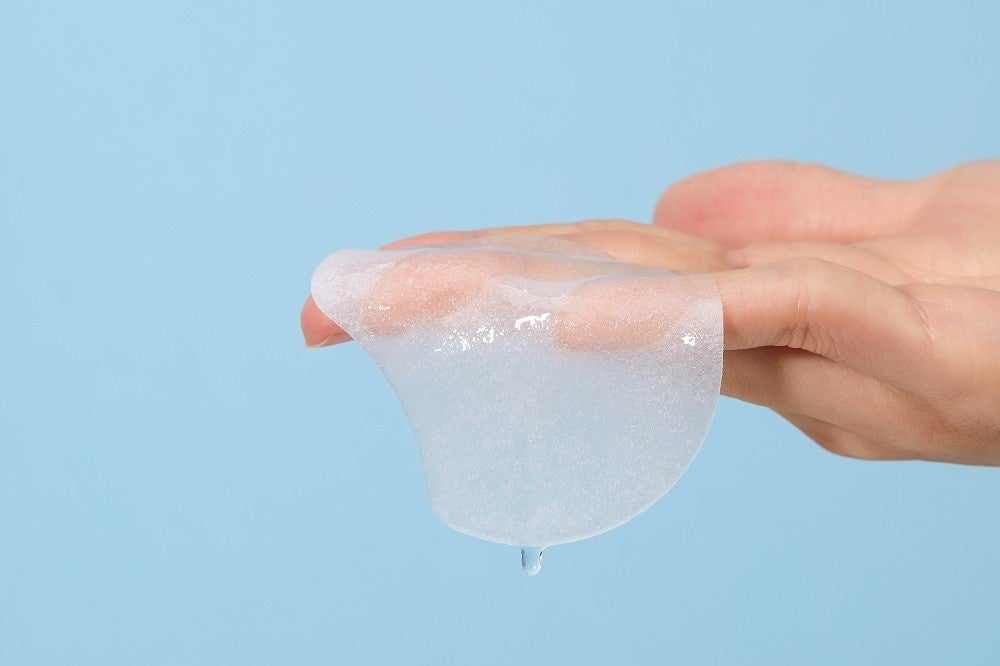 美容液をたっぷりと含んだ薄いパッドが肌へ隙間なくぴたりと密着。目や鼻の周りにつけやすいくぼみ型のパッドです。