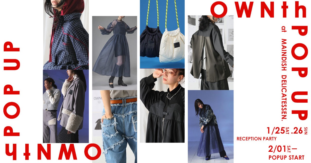 株式会社antiqua(本社:大阪府和泉市)が展開するファッションブランド「OWNth」のPOP UP STOREが、2025年2月1日(土)より約2ヵ月間、芦屋「MAINDISH DELICATESSEN」で開催決定!2025年春の新作をはじめ、人気アイテムや話題のキルティングバッグまで、幅広いラインナップを取り揃えてお待ちしております。