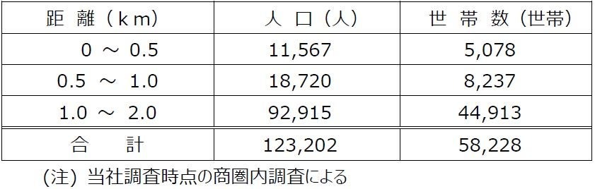 当店は、約280坪のスーパーマーケットで、敷地内にクリニック棟をかまえています。店舗はJR茨木駅の南東約2.6㎞に位置し、南約1.2㎞には高槻市・摂津市に繋がる府道14号線が通っています。店舗周辺4㎞圏内には、自社が展開する市内4店舗のうち3店舗が集まるドミナントエリアです。商圏2㎞以内は49歳以下の人の構成比が大阪府の平均を上回っており、子育て世代が多いことが特徴です。