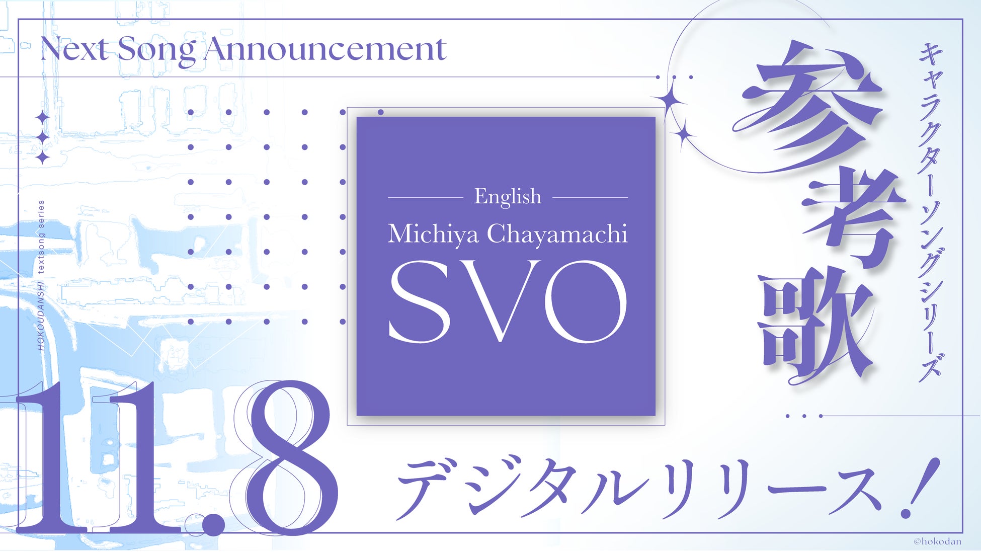 次回リリースは堂満智と同ユニットに所属するWITHPER・英語担当の茶屋町義也 (CV.今井文也) が歌唱する『SVO』!