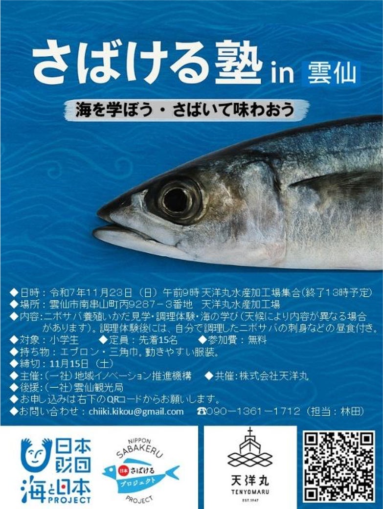 一般社団法人 海のごちそう推進機構と一般社団法人地域イノベーション推進機構は、魚を実際にさばくこと、地域の海洋変化や魚種の変遷を学ぶこと、さらに地域の郷土料理に根差した調理体験など、日本の豊かな海の食文化を継承し輪を広げるイベント「日本さばける塾 in 雲仙」を11月23日(日)に開催いたします。