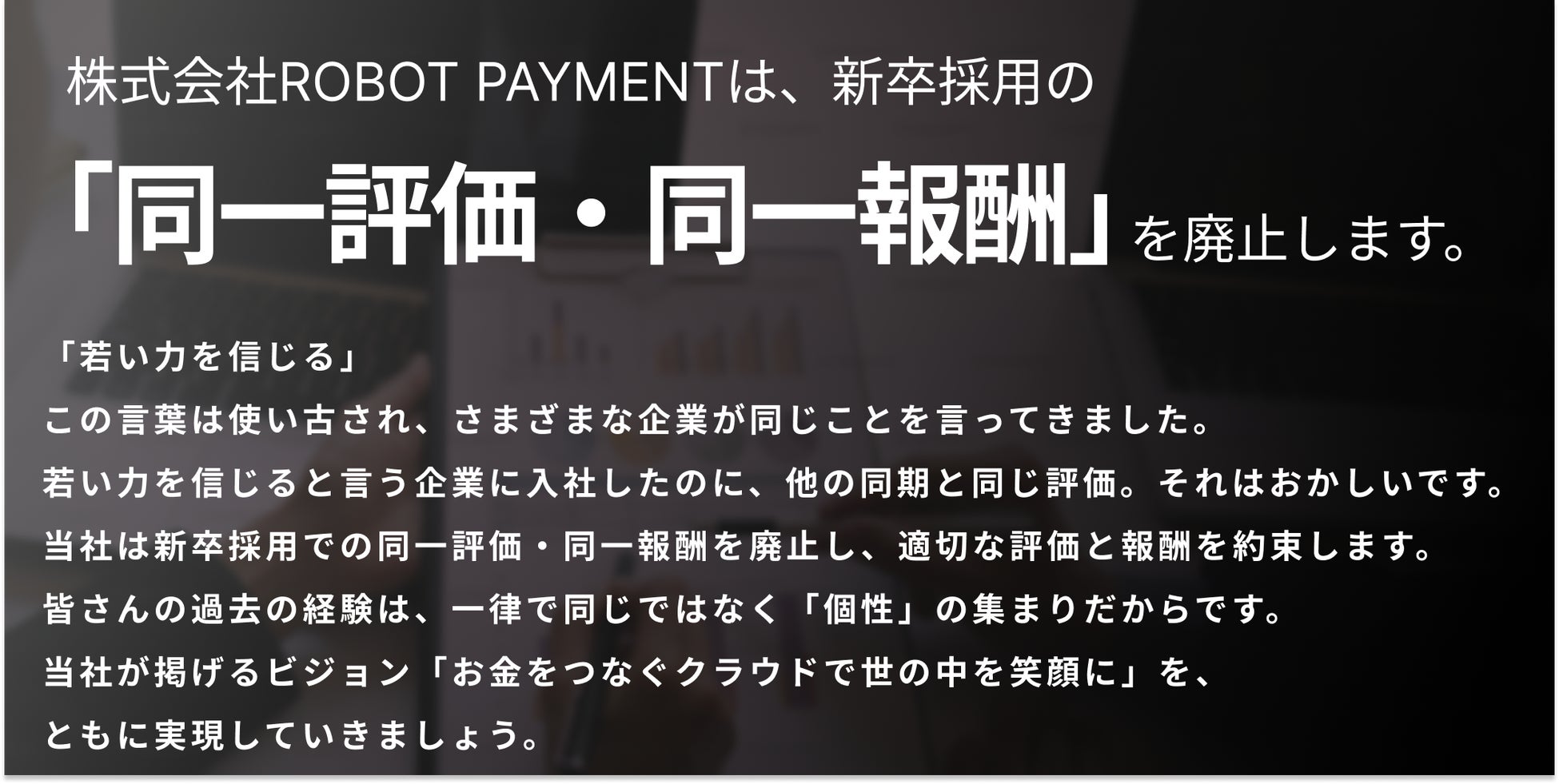 株式会社ROBOT PAYMENTは、新卒採用における同一評価・同一報酬を廃止し、学生時代の経験や実績を基にした評価・報酬制度を新設