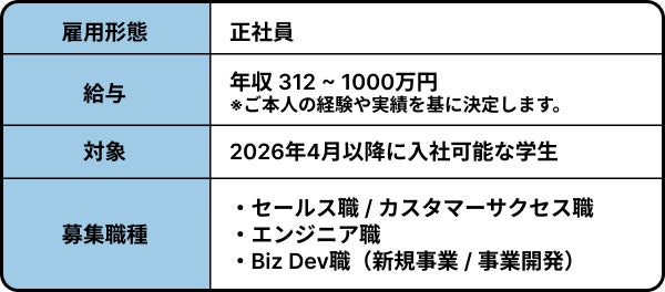 新卒採用の募集要件と年収モデルは、以下となります。
