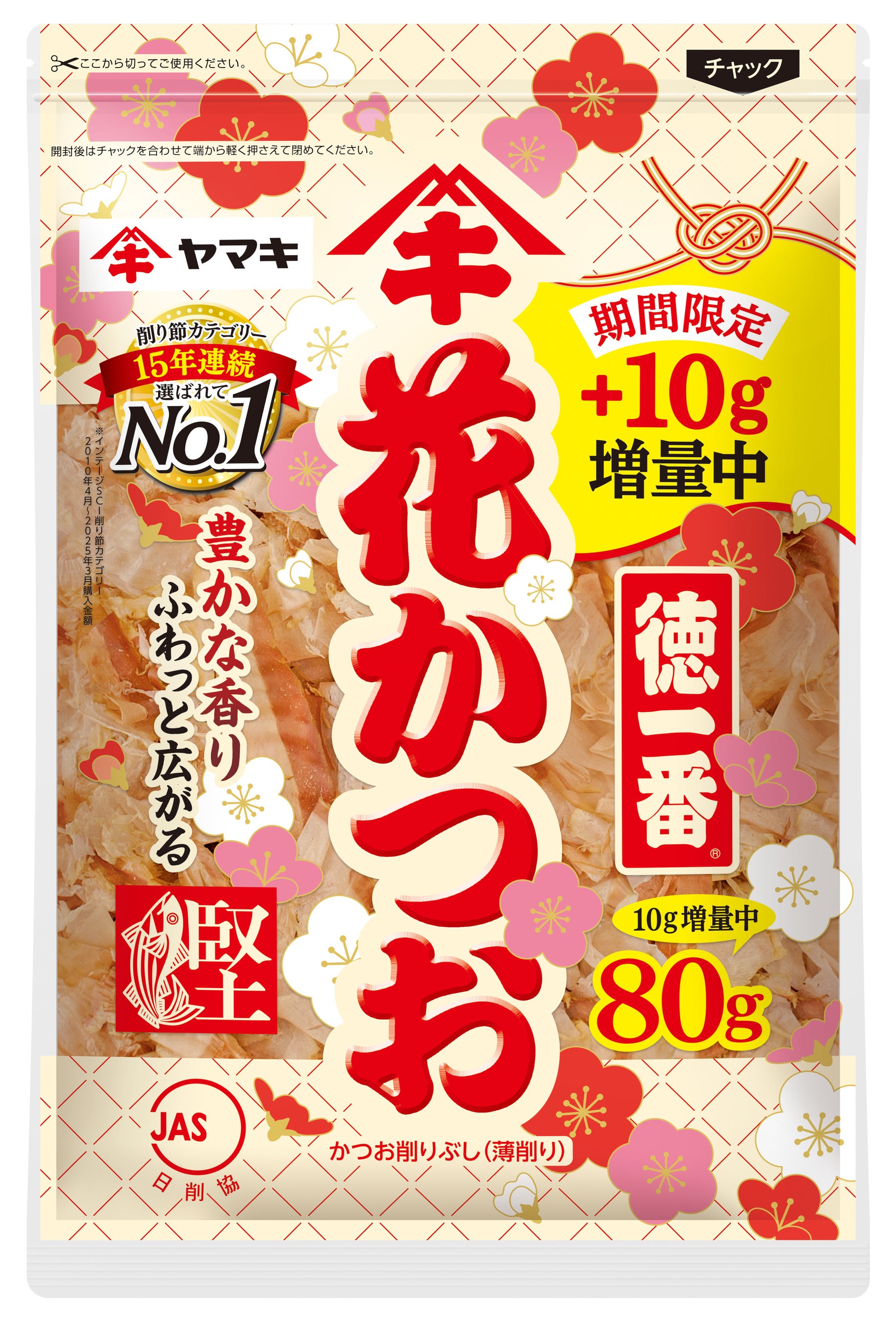 ヤマキ株式会社(本社:愛媛県伊予市 代表取締役社長:城戸善浩 以下ヤマキ)は、2025年11月1日(土)より、「徳一番®花かつお70g」「徳一番®かつおパック2g×20P」「マイルドパック2g×8P」の3商品を対象に、日頃のご愛顧への感謝を込めた、数量限定の増量企画を実施します。