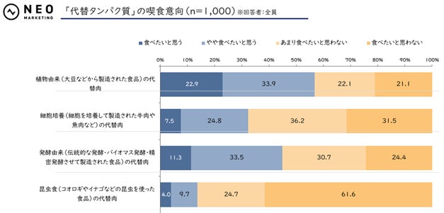 設問では、回答者がイメージしやすいように「代替タンパク質を利用した代替肉」と表現しています。