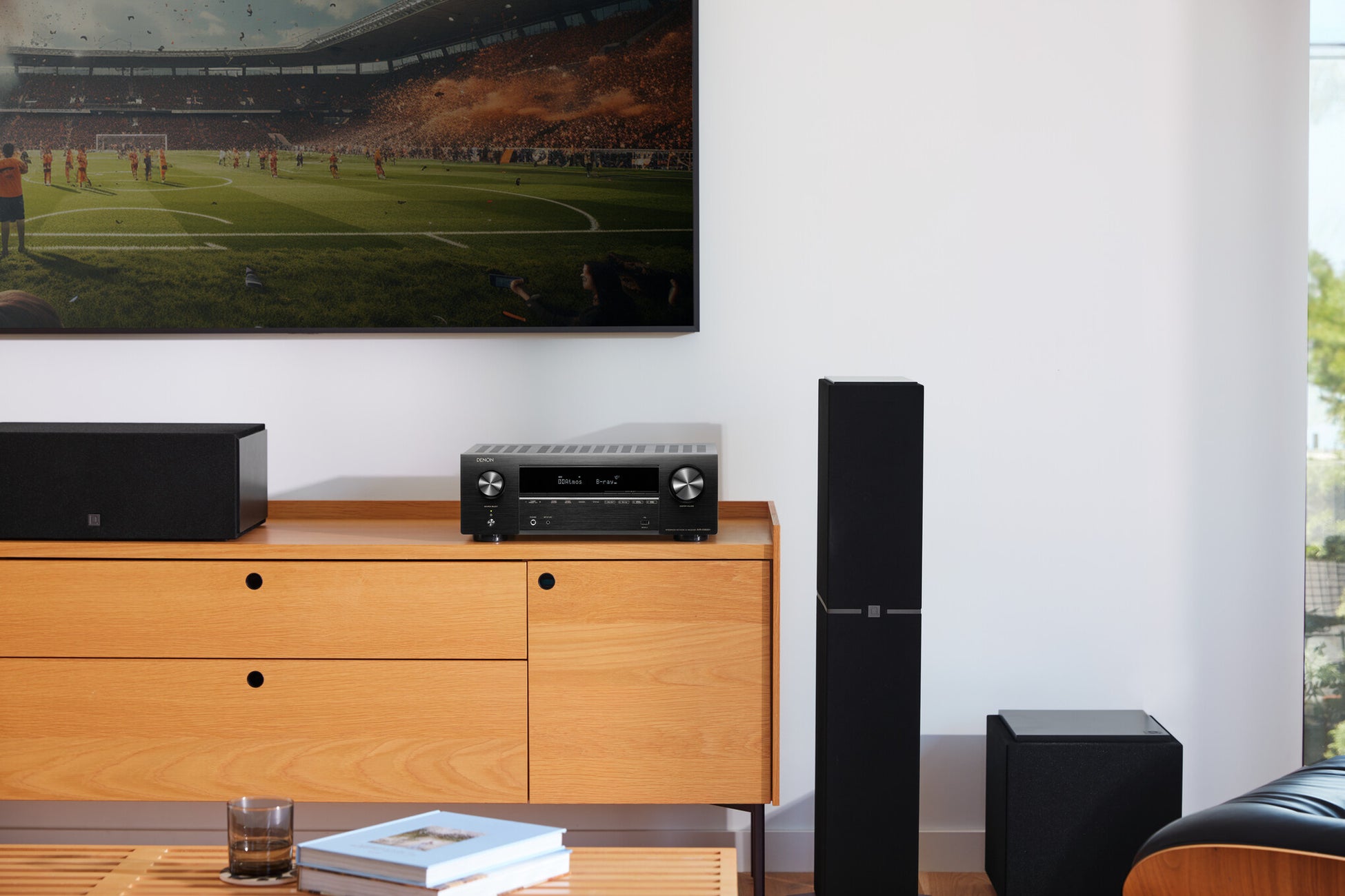 「ロスレスオーディオやイマーシブオーディオの真価を引き出し、ダビングステージに迫るサウンドをホームシアターで再現すること」。エントリーモデルに対しても、このデノンのAVアンプが目指す理想を求める姿勢に変わりはありません。AVR-X1800Hは、ダビングステージにおいて映画制作者が聴いているサウンドのスケール感と豊かな情報量をありのままに再現するために、最大出力175Wのフルディスクリート・パワーアンプを7ch搭載しています。カスタム仕様の大型EIコアトランス、大容量10,000uF ×2のカスタムコンデンサー、信号ラインおよび電源ラインの最短化と低インピーダンス化により、5ch同時再生時でも定格出力の70%以上という大出力を可能にしています。もちろんAVR-X1800Hについてもすべてのデノン製品の音質チューニングを手がけるサウンドマスター山内慎一が徹底的な試聴を繰り返して音質をまとめ上げています。音質担当エンジニアと共にこれまで長年にわたって培ってきた知見とカスタムメイドの高音質パーツ、回路設計技術を最大限に活用し、クラスを超えたクオリティにまで引き上げ、Hi-Fiオーディオに肉薄する忠実性を実現しています。