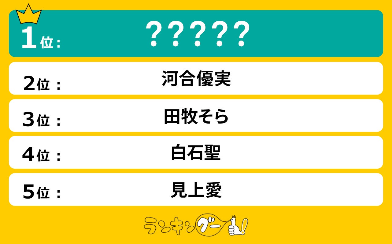 ランキングー!では「ネクストブレイク若手女優」をピックアップし、ランキングを調査。全年代の男女(性別回答しないを含む)7,142名にアンケートを行い、TOP20を決定しました。ここではTOP5をご紹介します。