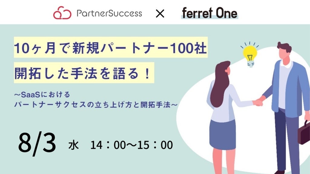 8/3(水)14時より、ferret One主催のオンラインウェビナー「SaaSにおけるパートナーサクセスの立ち上げ方と開拓手法」を開催