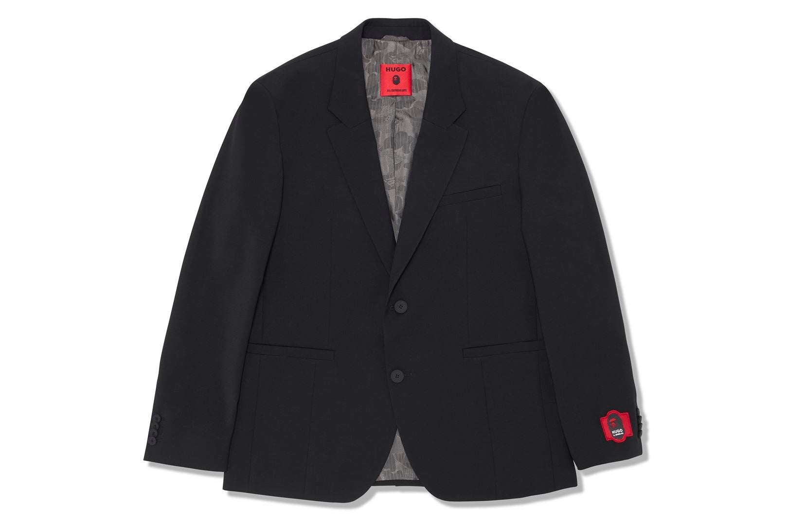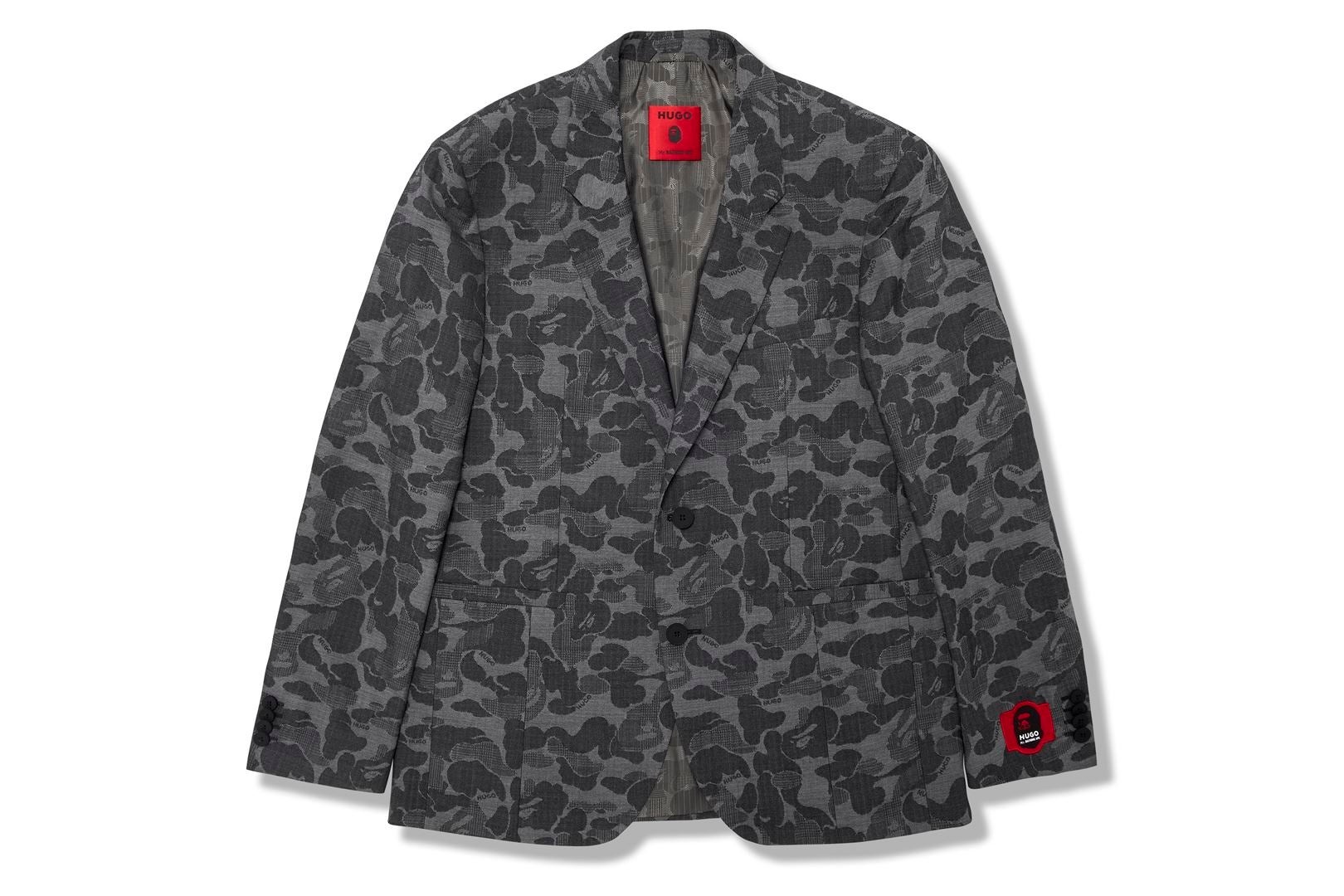 「HUGO」は、カジュアルとフォーマルを兼ね備え、テーラリングにユースフルなテイストをミックスしており、オリジナリティと自己表現の原則は、「Mr. BATHING APE®」と合致しています。