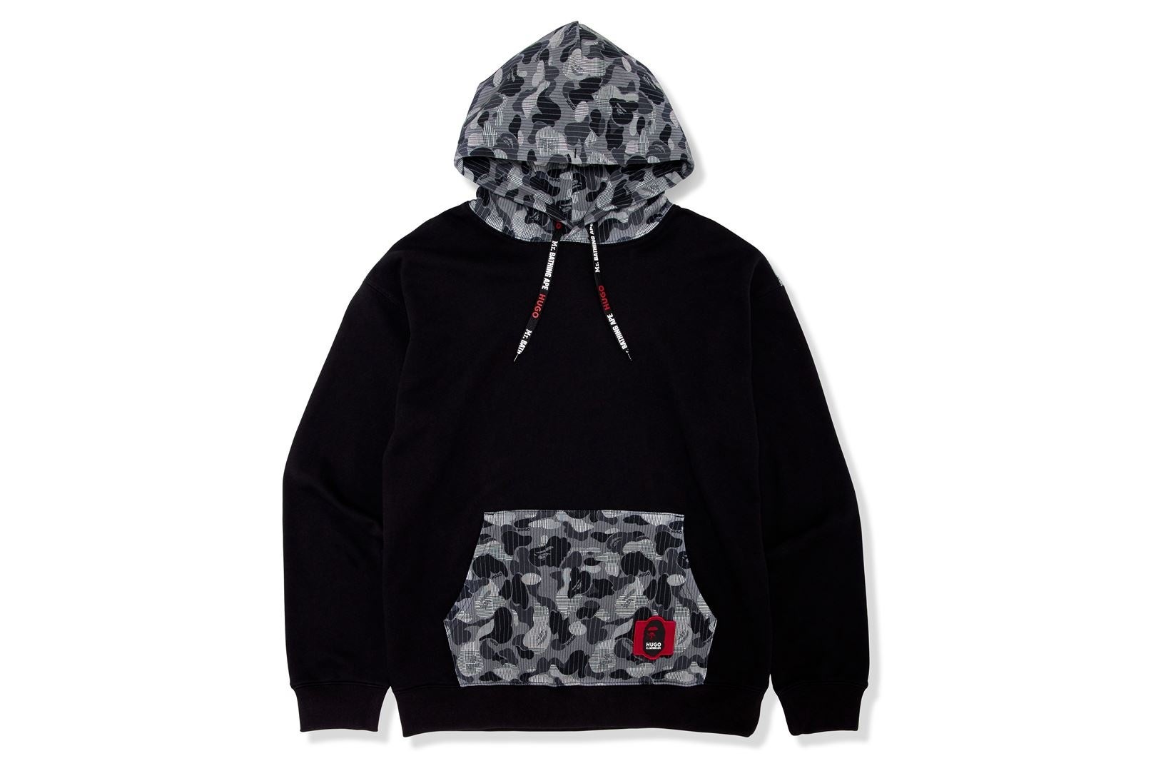 BAPE®オリジナルCAMOとHUGOのシグネチャーであるレッドを組み合わせ、両ブランドの特徴を存分に楽しめる仕上がりになっています。