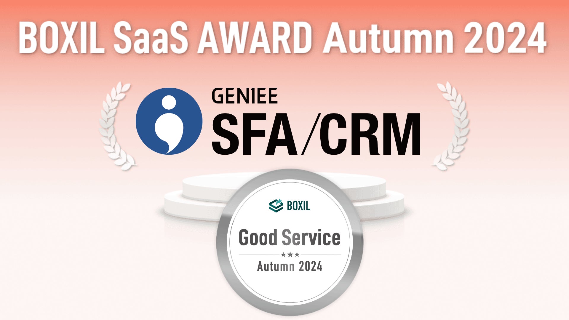 株式会社ジーニー(本社:東京都新宿区、代表取締役社長:工藤 智昭、以下ジーニー)が開発・提供する営業管理ツール「GENIEE SFA/CRM」が、スマートキャンプ株式会社(以下、スマートキャンプ)が開催する「BOXIL SaaS AWARD Autumn 2024」のSFA(営業支援システム)部門で3期連続「Good Service」を受賞しました。