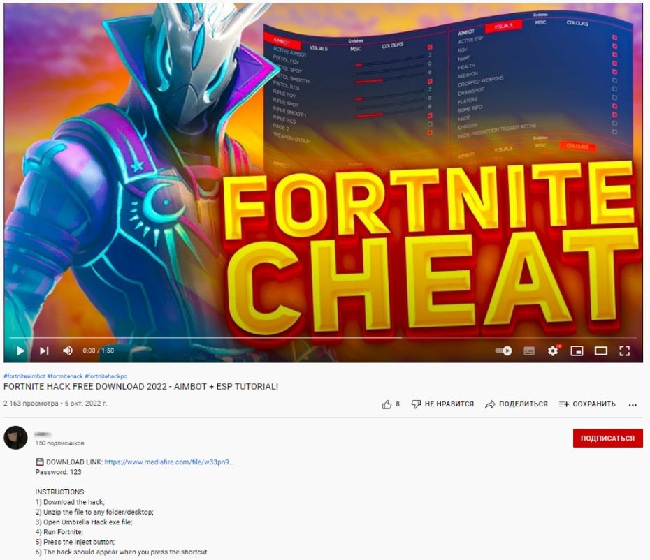 図2:トラッファーが情報窃取型マルウェアを拡散するために使用した動画の例