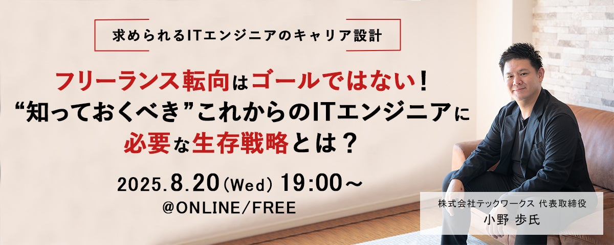 ITエンジニア向けウェビナー『フリーランス転向はゴールではない!“知っておくべき”これからのITエンジニアに必要な生存戦略とは?』2025年8月20日(水)19時~開催決定