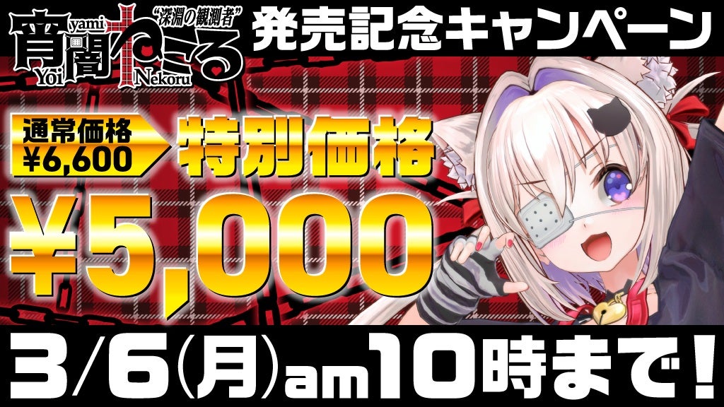 オリジナル3Dモデル「“深淵の観測者”宵闇ねこる(よいやみ ねこる)」の発売を記念して、発売日から3日間、特別価格にてご提供いたします。
