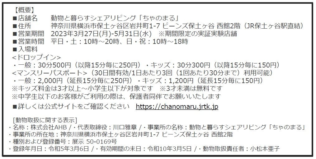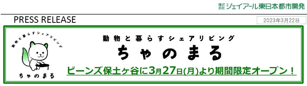 新しい形のサードプレイスの創造を目指す「動物と暮らすシェアリビング ちゃのまる」を3月27日(月)