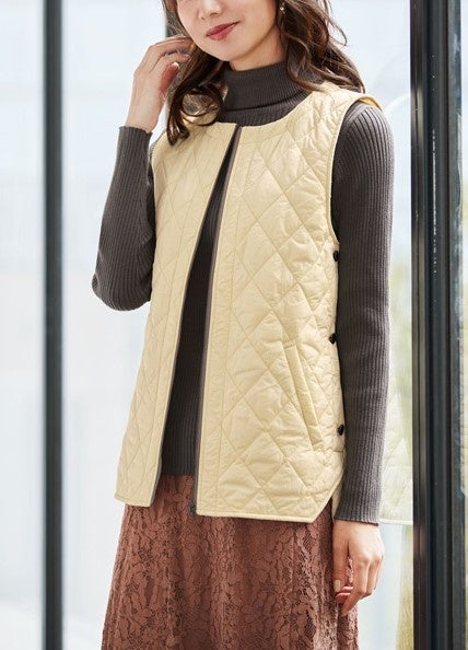 ■特長:表地にリサイクルナイロンを100%使用し、環境に配慮したキルトベスト。