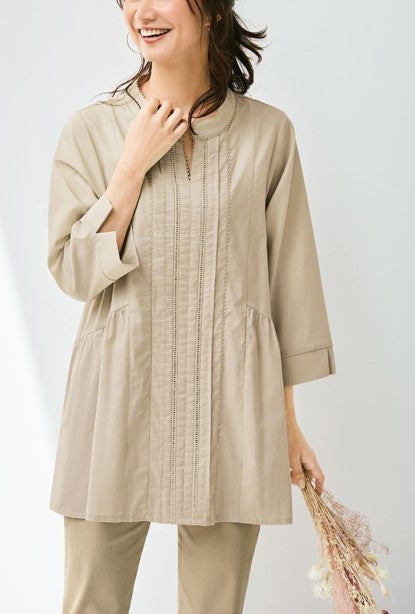 特におすすめのアイテムとして、「リサイクルコットンタックデザインブラウス」の特長やポイントを詳しくご紹介します。