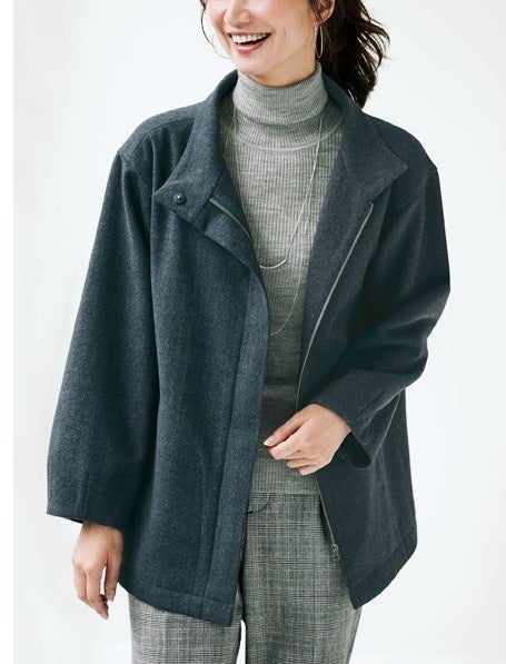 ■特長:毛糸を紡ぎ直したリサイクルウールをポリエステルにミックスした素材のショートコート。