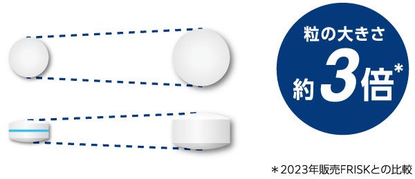 リフレッシュメント用の大粒タブレット。従来の商品と比べて粒の大きさが約3倍(※2)。