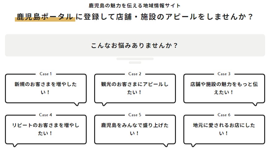 「鹿児島ポータル」に登録して店舗・施設のアピールをしたい事業者さまは、下記URLからお気軽にお問い合わせください。