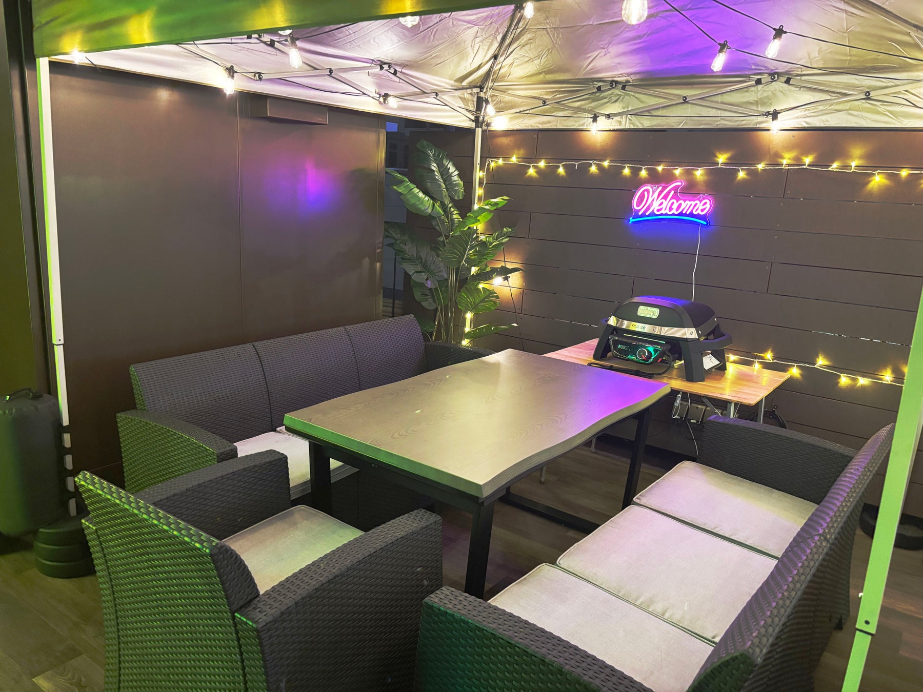 開放的な屋上で味わえる本格BBQに加え、カラオケステージや大型ビジョンを活用した空間演出により、昼夜問わず盛り上がれる新たなBBQ体験を創出。