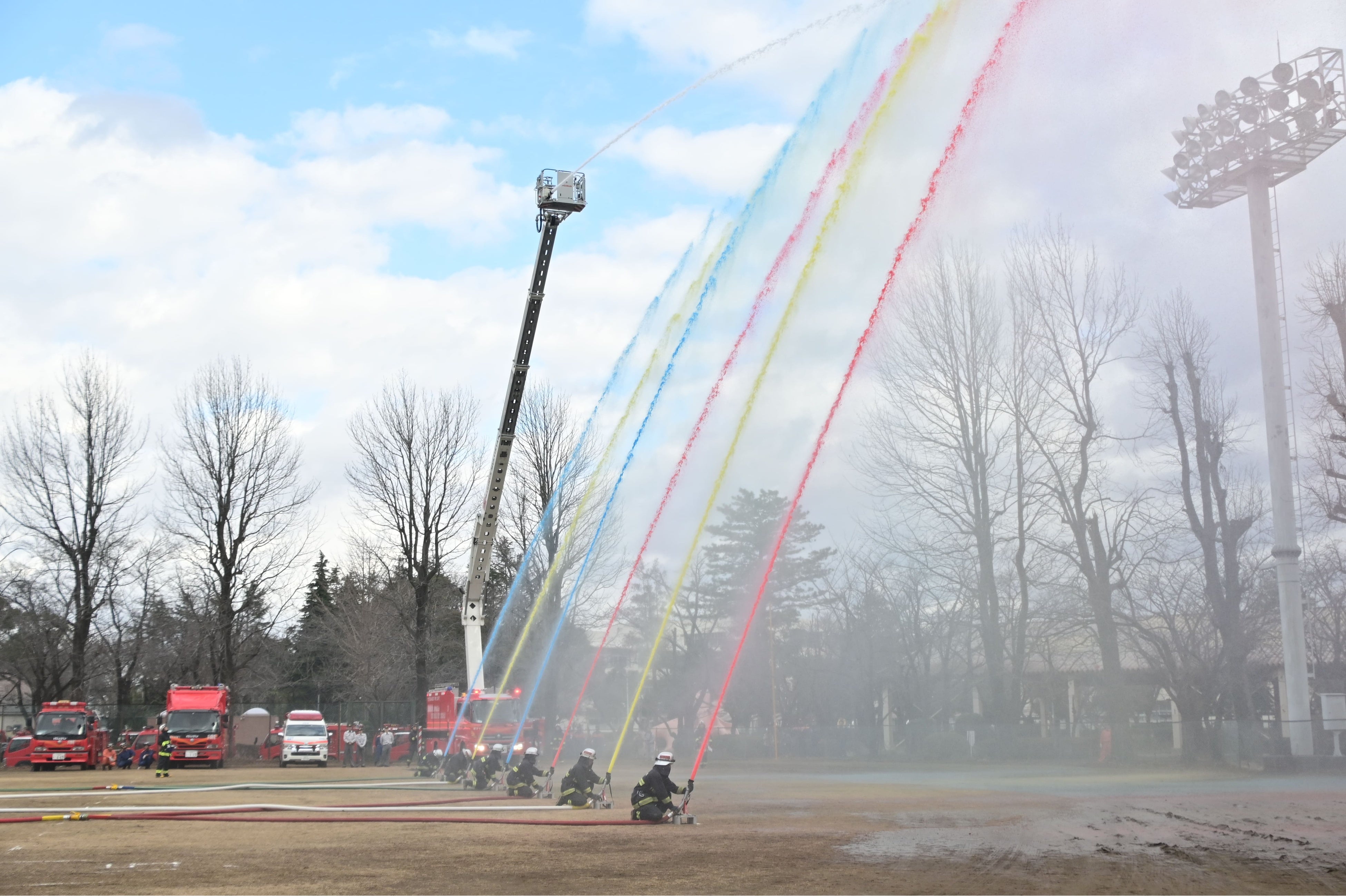 災害の最前線で活躍する消防車両の分列行進、色鮮やかな一斉放水、新春にふさわしい華やかなアトラクションなどを披露します。是非ご来場ください。
