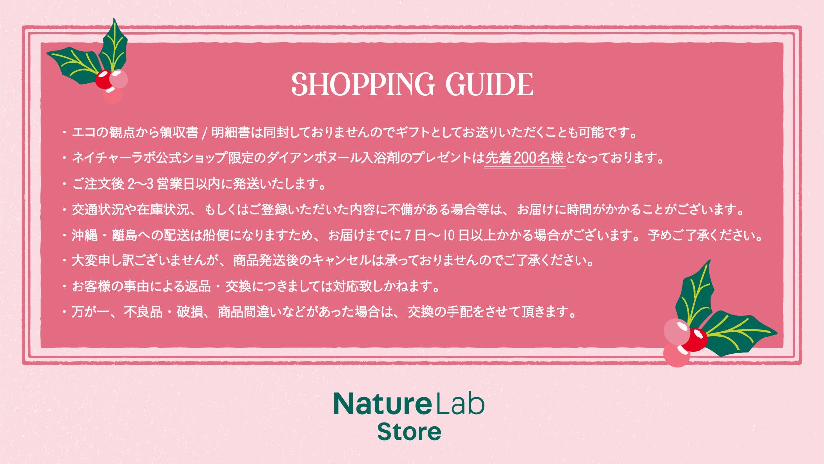 様々なシーンで香りを楽しめるラインナップで、クリスマスギフトにはもちろん、今年がんばった自分へのご褒美としても最適です。クリスマスを感じる『香りのギフトボックス』を大切な方へお届けいたします。ネイチャーラボ公式ストア:https://store.naturelab.co.jp/