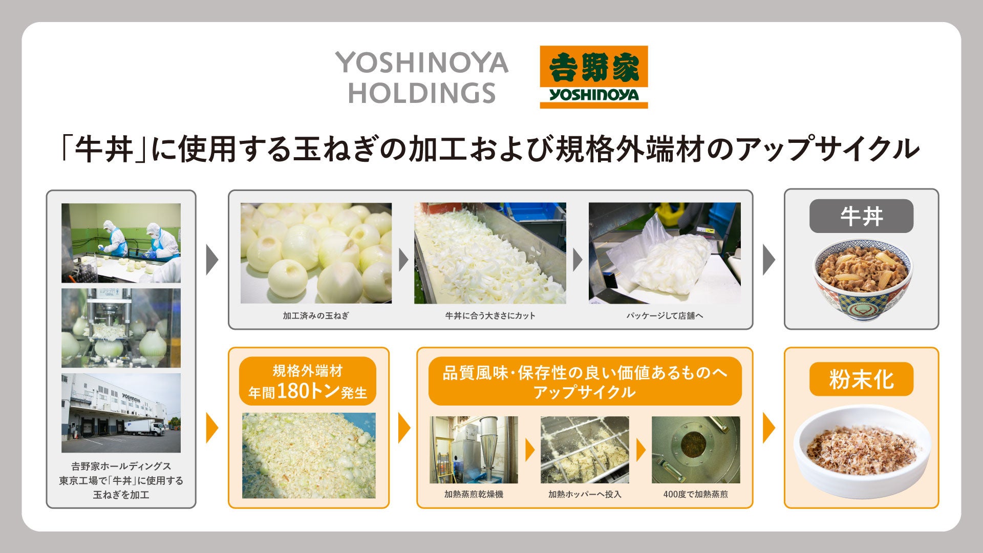 吉野家ホールディングスの食品ロスの取り組み【令和6年度食品ロス削減推進表彰 環境事務次官賞受賞】玉ねぎを加工する際に発生する端材のアップサイクルと持続可能なスキームを構築