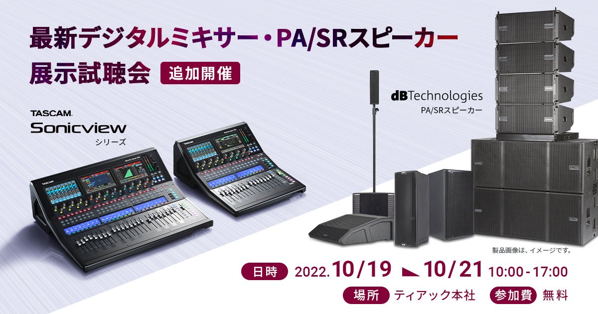 【追加開催】最新デジタルミキサー『TASCAM Sonicview』およびdBTechnologies PA/SRスピーカーの無料展示試聴会を追加開催