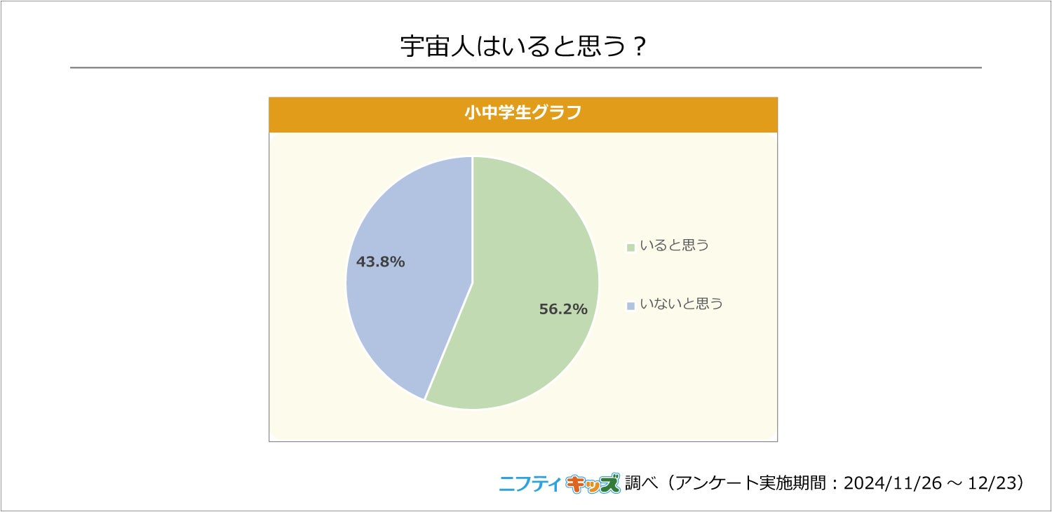 56.2%の小中学生が宇宙人は「いると思う」と回答しました。