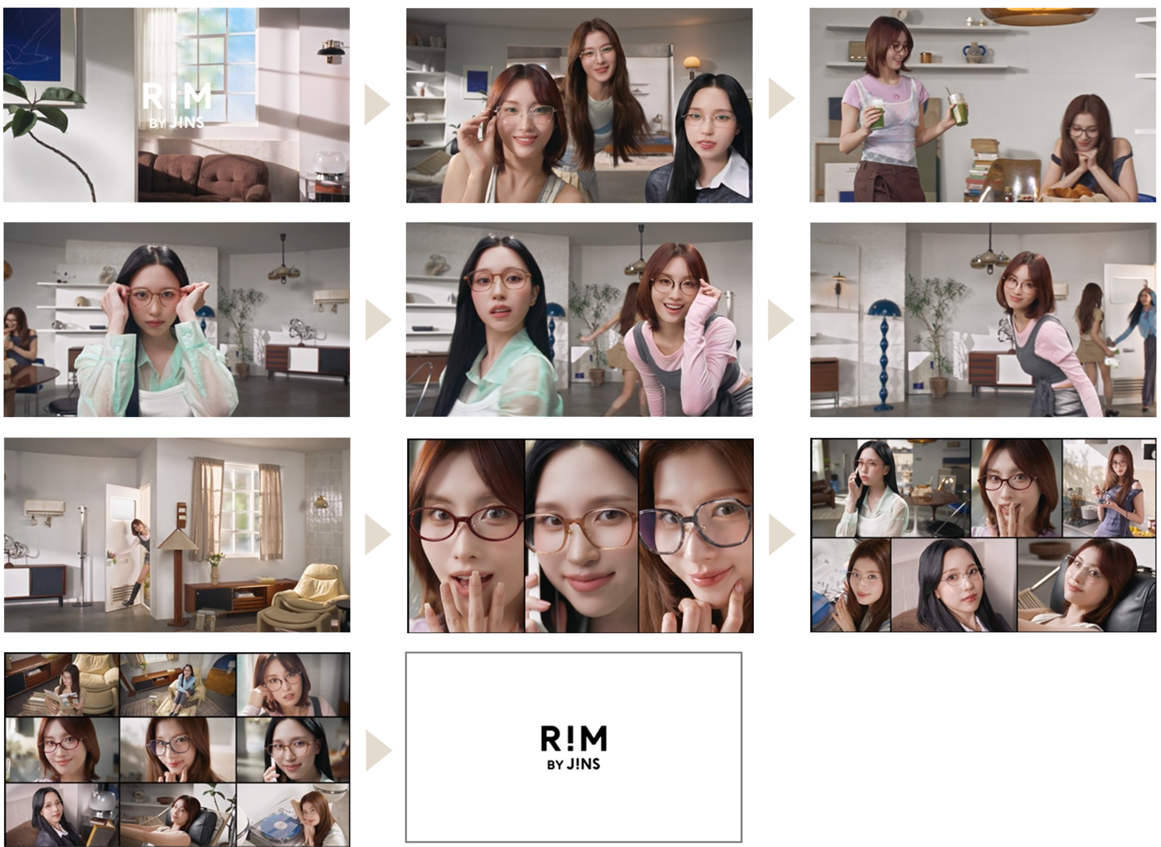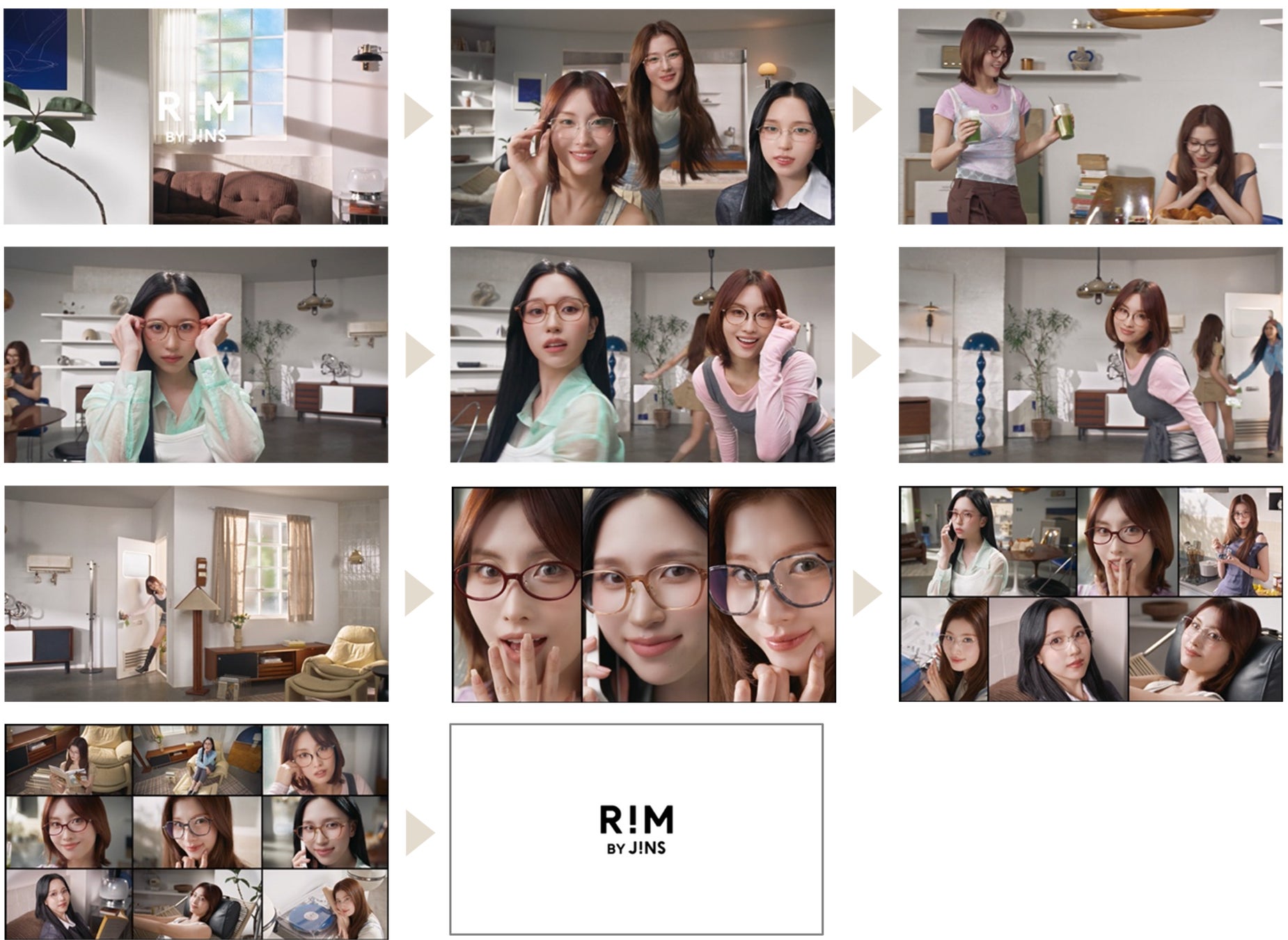 コンセプトフィルム「RIM loves MISAMO 今日のアイウエア、どれにする?」は、お出かけ前の慌ただしい朝の身支度の時間に、MISAMOの3人がファッションや髪型に合わせてアイウエアをかけかえ、顔まわりの印象がパッと変わる瞬間や、気分が上がった表情を捉えています。スタイリングは、色のレイヤードや異素材ミックスなどをテーマに三者三様の着こなしに。40秒程度の切れ目ない動画のなかで、3人それぞれが3つのアイウエアと3つのスタイリングに、目まぐるしく変化していく様子が楽しめます。着用商品やスタイリングは特設サイト(https://rim.jins.com/jp/lp/misamo26ss/)にてご覧いただけます。