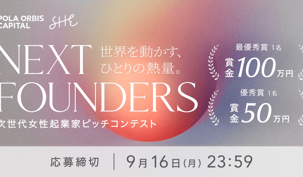NEXT FOUNDERS は、女性起業家の輩出を促進すべく、SHE 株式会社とポーラ・オルビスホールディングスが協業で立ち上げたプロジェクトです。