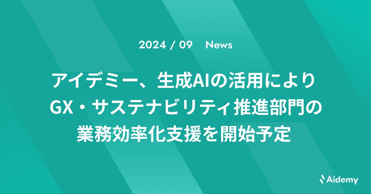 アイデミー、生成AIの活用によりGX・サステナビリティ推進部門の業務効率化支援を開始予定