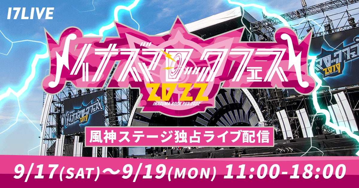 「イナズマロック フェス 2022」の風神ステージでは、「17LIVE」にて6月に開催したアプリ内イベントを勝ち抜き、最終オーディションで選ばれたライバー3組も出演決定。9月17日(土)に実施する1日目は「鈴木龍二」、9月18日(日)の2日目は「Swagcky」、9月19日(月・祝)の最終日に「neighborscomplain」が出演し、「イナズマロック フェス 2022」を盛り上げます。