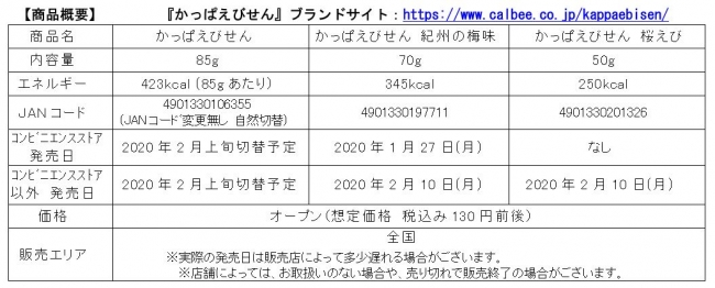 今回のリニューアルでは、『かっぱえびせん』を幅広い世代に食べて頂くため、天然えびの使用量を増やすとともに、味付けにも天然えび丸ごとパウダーを使用することで、えびの風味をUPさせ塩分量も調整しました。大人も子供も楽しめる「もっと、やめられない、とまらない」おいしさに進化しました。同時期に『かっぱえびせん 紀州の梅味』『かっぱえびせん 桜えび』も発売しますので合わせてお楽しみください。