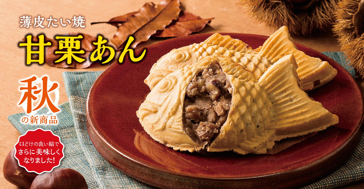 たい焼専門店『銀のあん』では、クロワッサンたい焼「塩栗」・「かぼちゃあん」に加え、薄皮たい焼「甘栗あん」の3種を9/30(土)より販売!