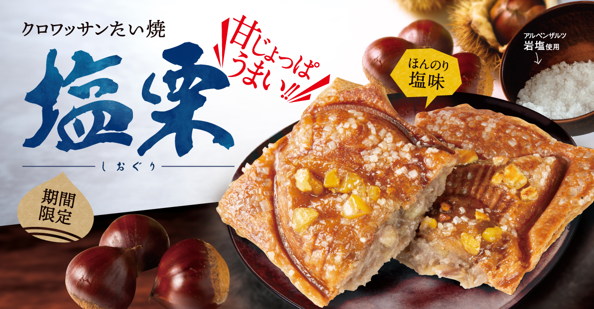 【秋のスイーツたい焼 新登場!】甘じょっぱいのが止まらない‼ クロワッサンたい焼 新作『塩栗(しおぐり)』、9/28(木)から築地銀だこで発売!