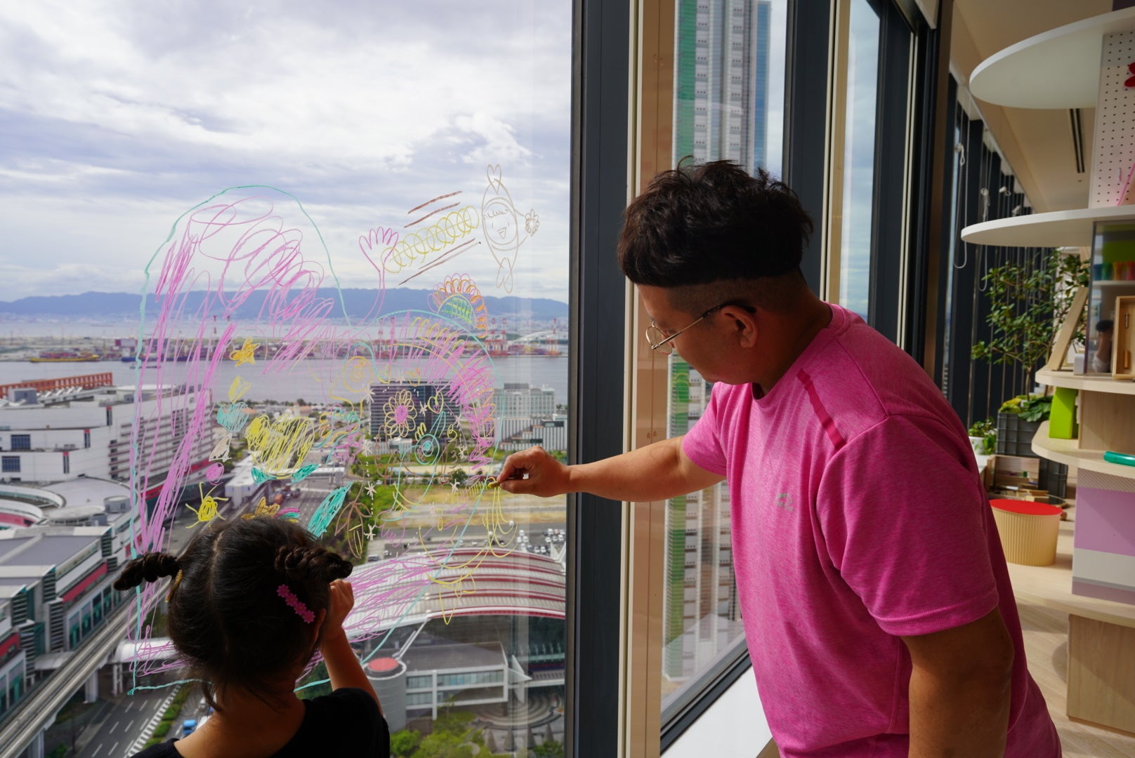 リゾナーレ大阪のアトリエ内にたいぞうさんのアトリエが期間限定で誕生します。アトリエの中には、これまでのたいぞうさんの作品展示や、普段の制作に使用している筆やインクなどの画材や紙やキャンパスなどの支持体に触れることで、たいぞうさんがどのように制作をしているのか知ることができます。子どもたちが、作品や画材を通して、本物のアーティストに出会い、感性を磨くことができる場所です。