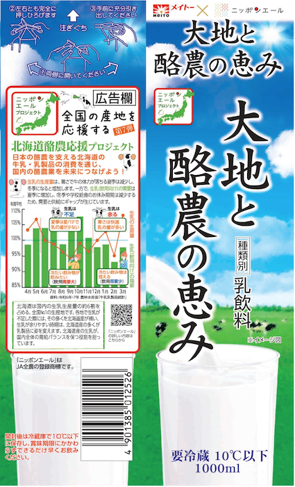 ニッポンエールプロジェクト第7弾では、「北海道酪農応援 ~牛乳・乳製品の消費拡大~」をテーマに、春休みやゴールデンウィークなどの学乳休止による生乳消費が減少する期間の牛乳乳製品の消費拡大を目的としており、本商品も北海道産の乳製品を使用しています。