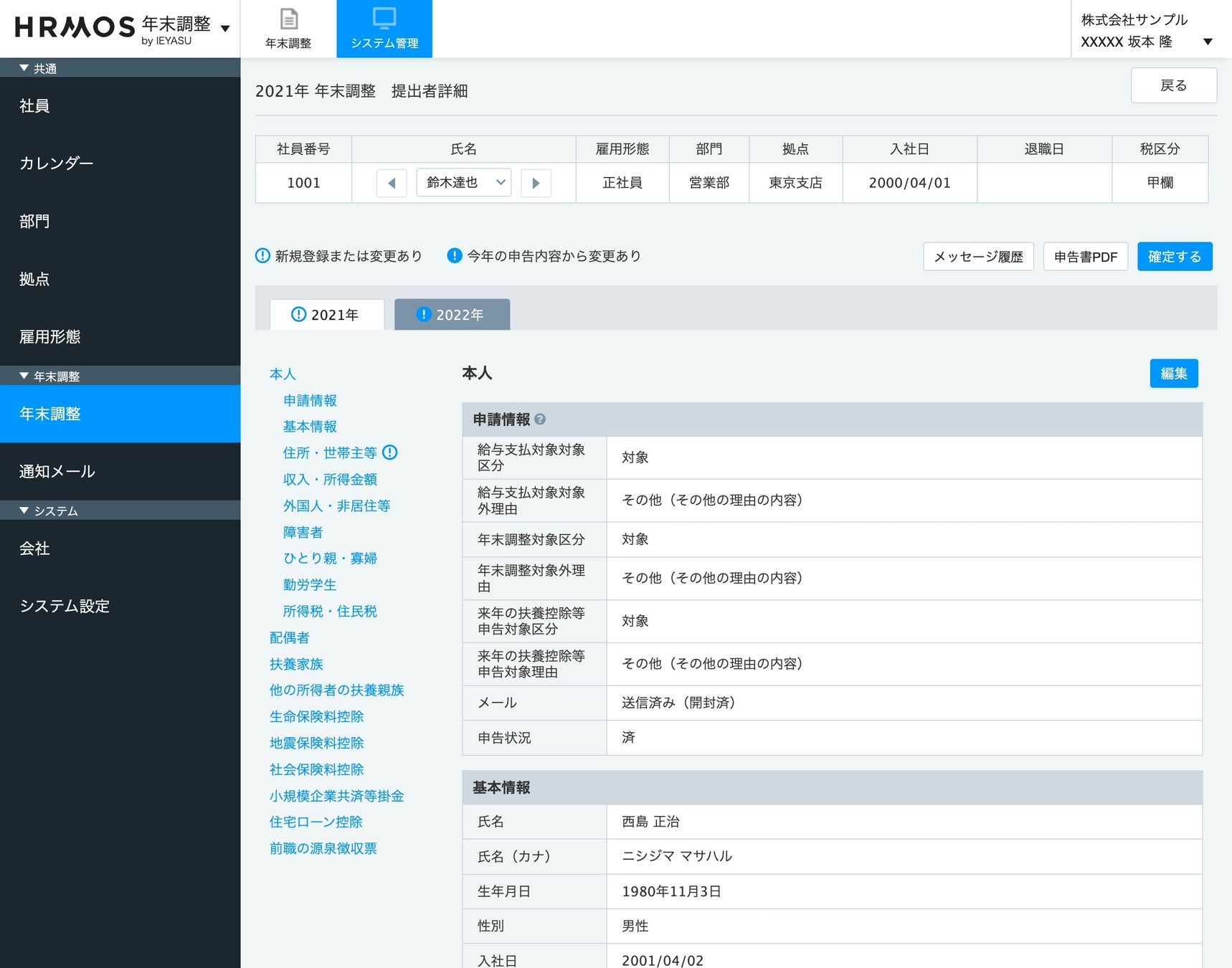 ・年末調整業務担当者の工数を削減する、進捗管理・レポート画面