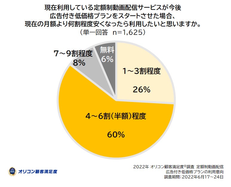 ■《利用意向》 広告付き低価格プラン「今後利用してみたい」過半数「4~6割(半額)程度安くなったら利用したい」が最多60%