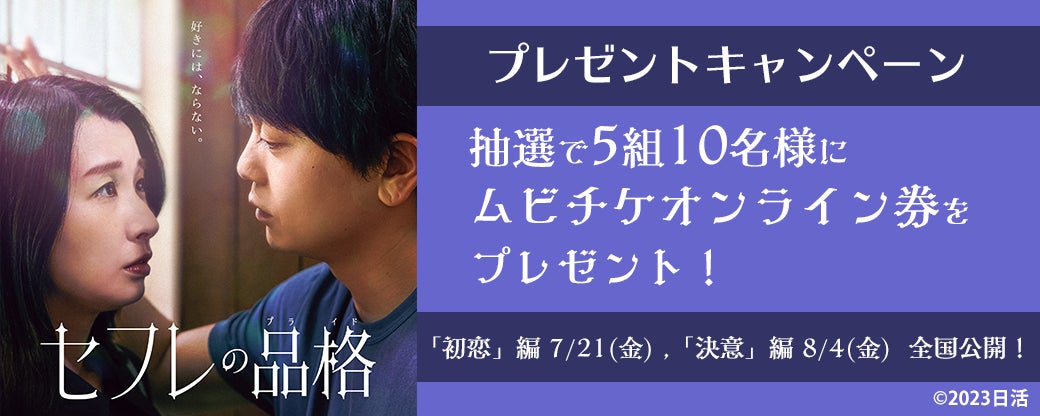 紙コミック・電子コミック累計430万部を突破したレディコミの大ヒット作が映画化!行平あい佳さん、青柳翔さんがW主演をつとめる映画『セフレの品格 初恋』が7月21日(金)より全国公開されます。本作品の公開を記念して、原作コミック「セフレの品格-プライド-」の1~5巻を『まんが王国』でご購入いただいた方の中から、抽選で5組10名様にムビチケオンライン券をプレゼントいたします。詳細はキャンペーン特設ページをご確認ください。※本作品は15歳未満の方はご鑑賞いただけません。