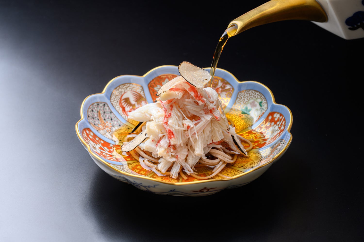 京都の日本料理店「高台寺 丹虎」を開店前に貸し切り、名窯「深川製磁」の歴史と文化を学び、器を鑑賞します。料理長が目の前でひとつずつ揚げる天ぷらを中心とした天ぷら会席のディナーを堪能。パリ万国博覧会で最高峰の金牌を受賞した、有田焼の名窯・深川製磁の器で食事を楽しめます。深川製磁の器の歴史と文化を学び、美しい坪庭を望むカウンター越しに美食を味わうOtonami限定プラン。